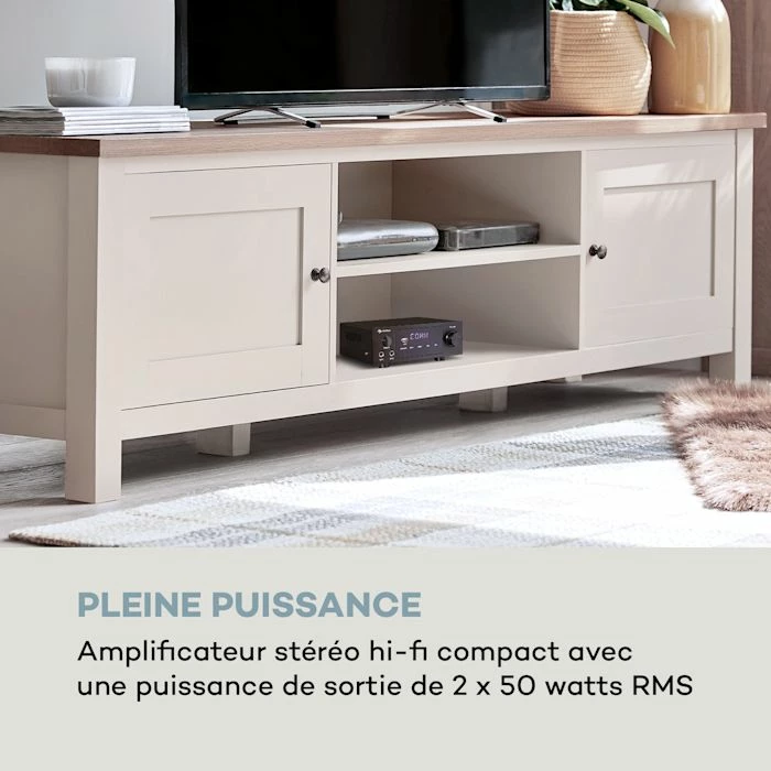 - Pleine puissance : amplificateur stéréo hi-fi compact avec une puissance de sortie de 2 x 50 watts RMS