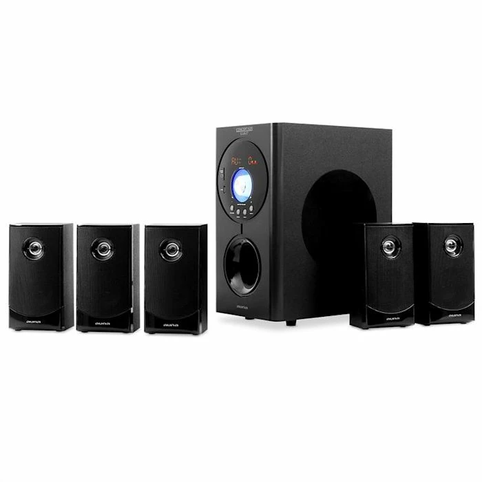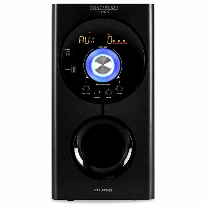 Le système d’enceintes actif Auna est un système home cinéma surround 5.1 multifonctionnel avec un écran LED clair.
