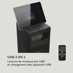 - 2 en 1 : lisez de la musique sur le port USB et rechargez vos appareils sur le port USB supplémentaire