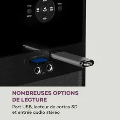 - Nombreuses options de lecture : port USB, lecteur de cartes SD et entrée audio stéréo