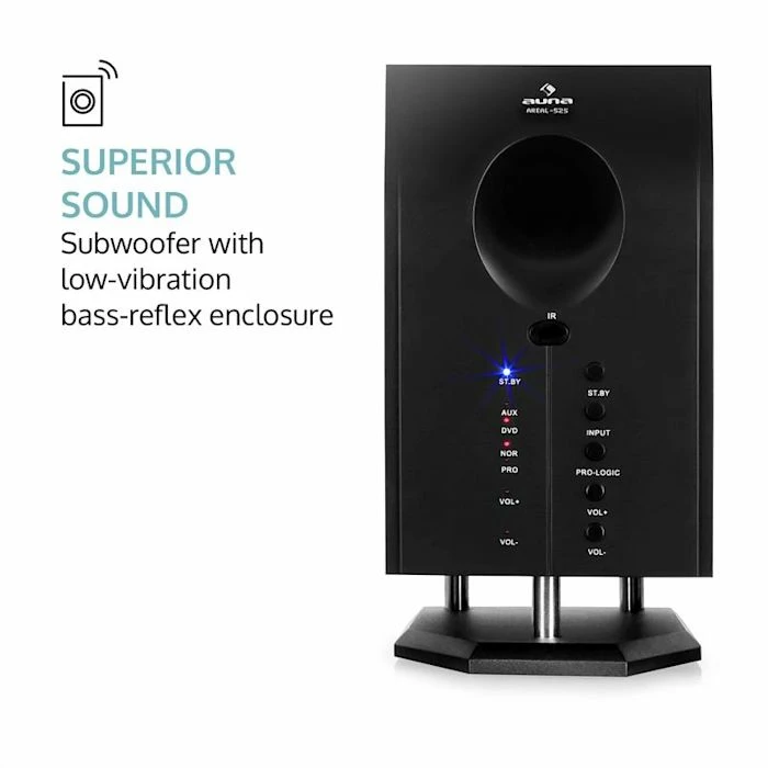 Avec le système surround Auna Areal 525 Wd équipez votre système home cinéma/HiFI à moindre frais.