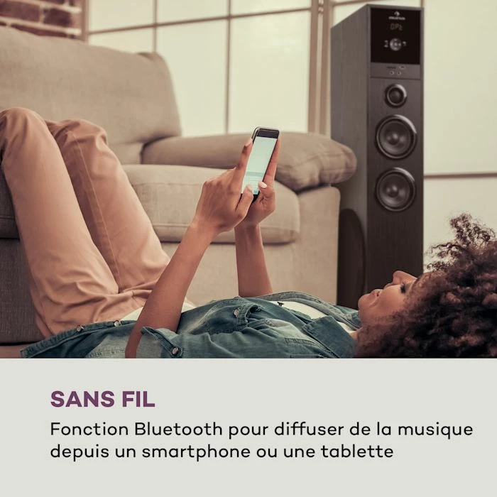 - Sans fil : fonction Bluetooth pour diffuser de la musique depuis un smartphone ou une tablette.