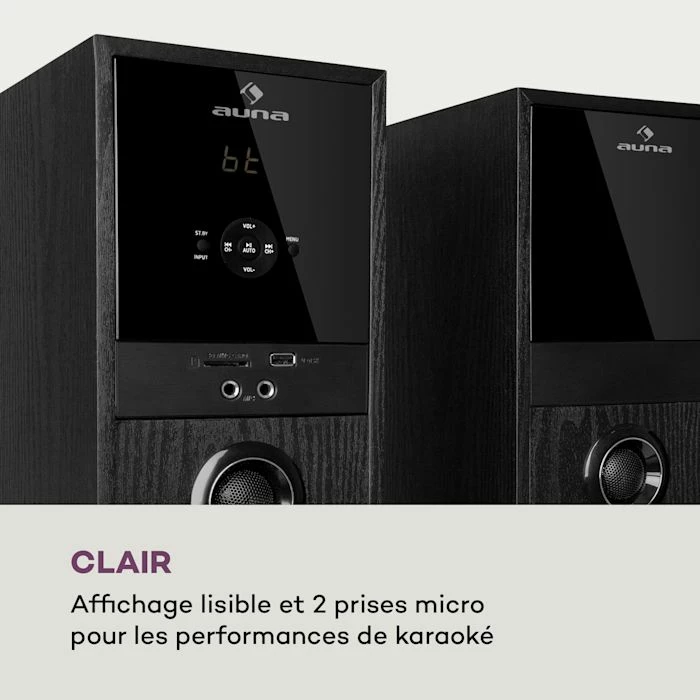 - Grande lisibilité : affichage facile à lire et 2 connexions de microphone pour les performances karaoké