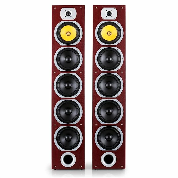 - Enceintes passives en tour à 4 voies avec 3 x woofer de 16.5 cm (6″), 1 x subwoofer de 16,5 cm (6,5″), 1 x ton médium de 16.5 (6.5″) & 1 x tweeter