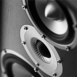 - Deux caissons de graves de 20 cm (8″) et un médium de 10 cm (4″) avec membrane en papier à faible résonance