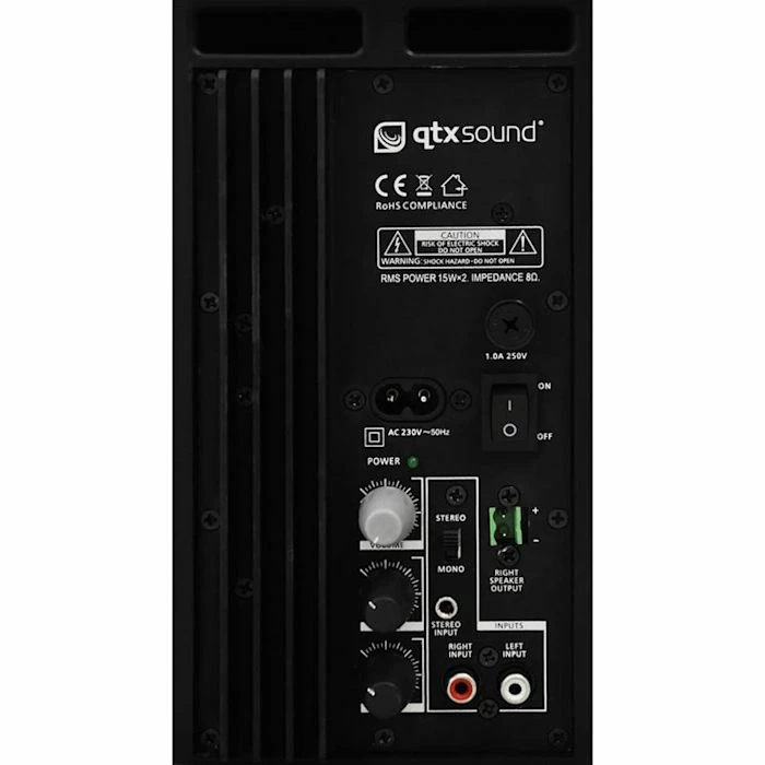 - Connectiqueshaut-parleur actif : 1 x entrée ligne stéréo Cinch/RCA, 1 x entrée Jack 3,5mmauxiliaire, 1 x sortie pour câble de haut-parleur
