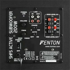 Le Subwoofer Fenton / Skytronic SHFS08B possède une puissance nominale de 200 Watts. Il travaille selon un principe actif et affiche une sensibilité de 87dB/mW pour une puissance musicale PMPO de 200 Watts.